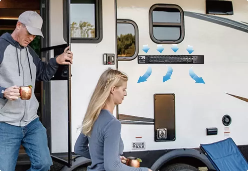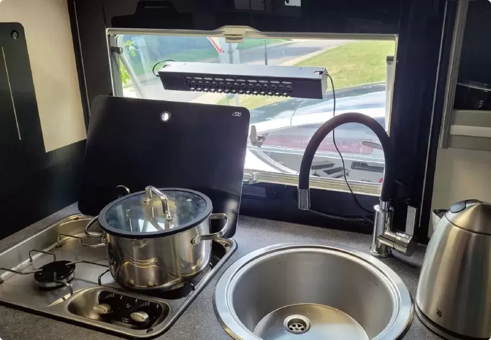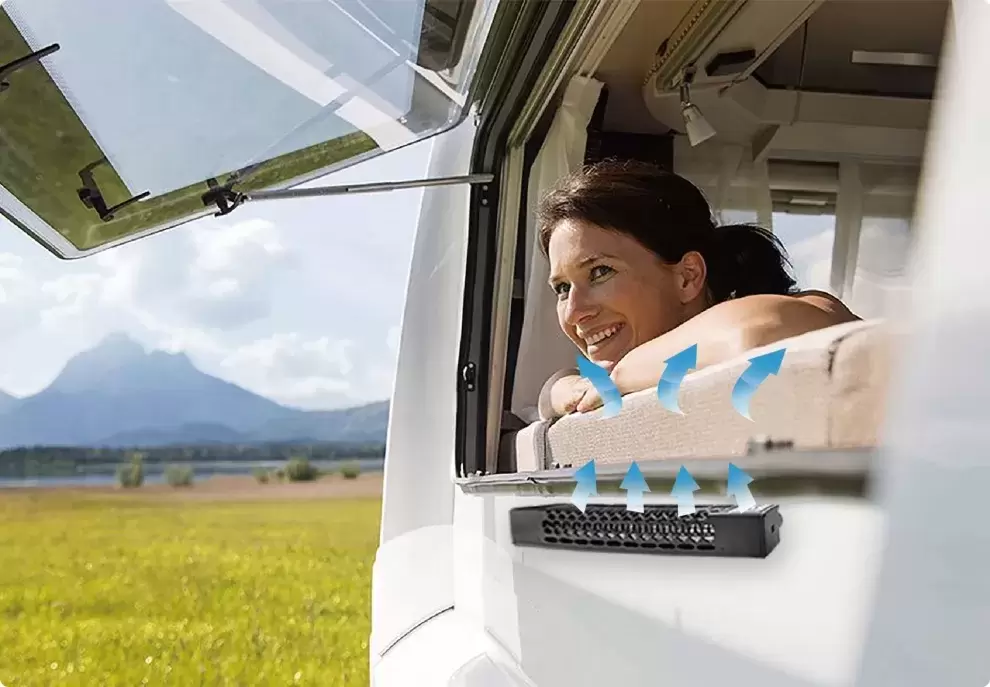 Ventilador multifuncional para uso exterior, exaustor de cozinha e contra embaciamento para caravanas, autocaravanas e autocaravanas.