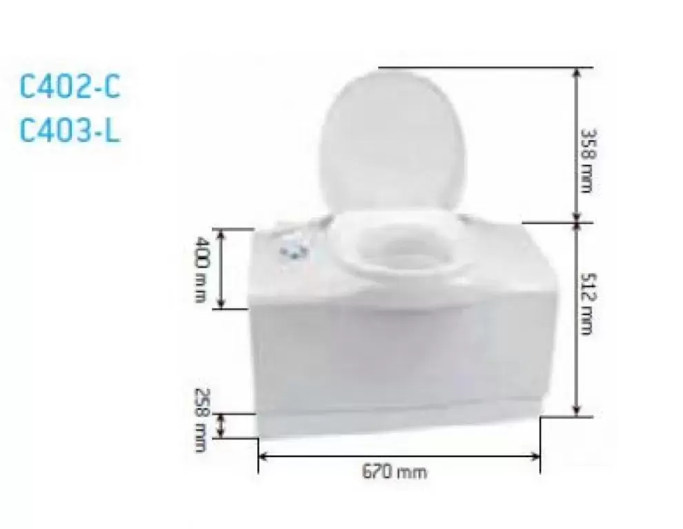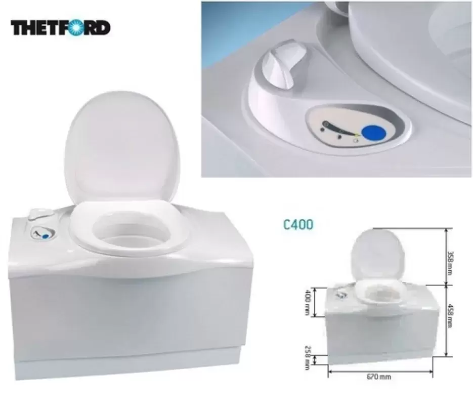 WC com Casette Thetford C403L lado esquerdo caravana, autocaravana, autocaravana.